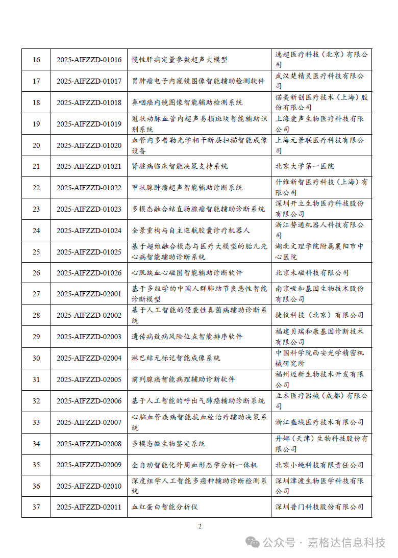 附件:2025年人工智能医疗器械创新任务揭榜挂帅入围单位名单。