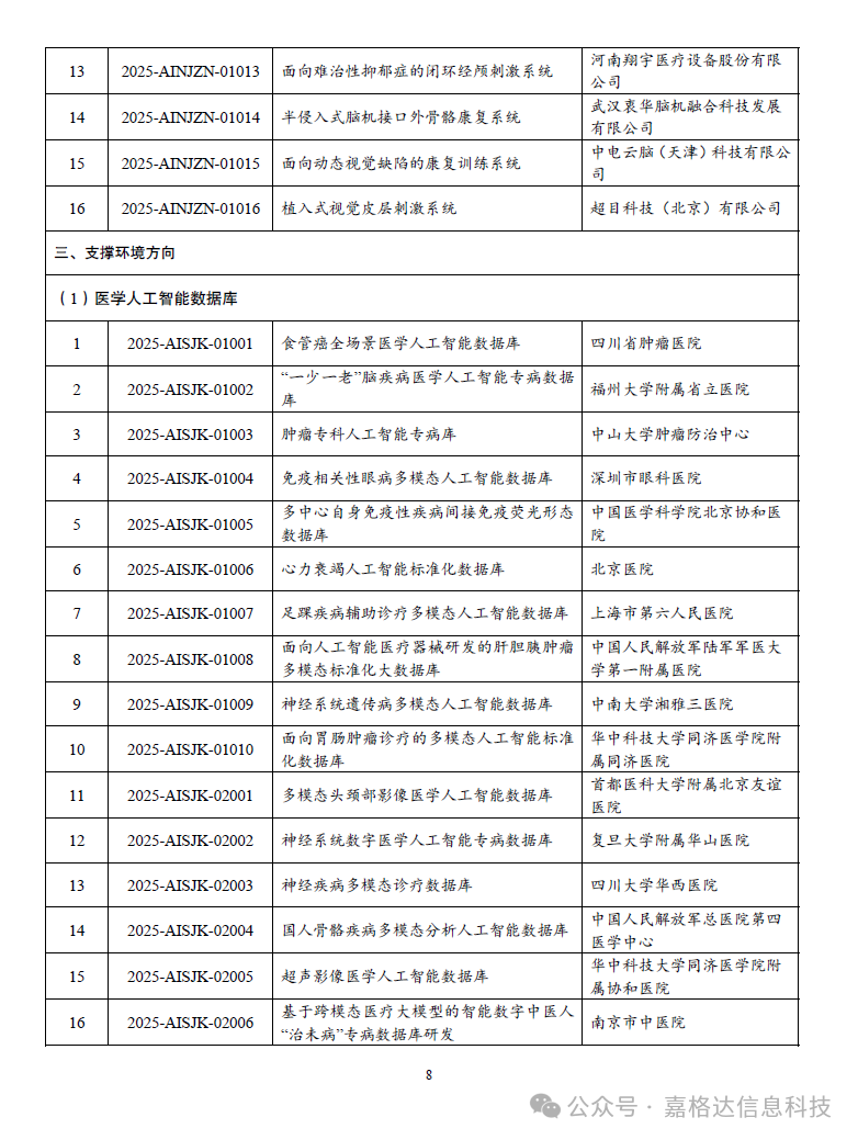 两部门关于公布2025年人工智能医疗器械创新任务揭榜挂帅入围单位的通知